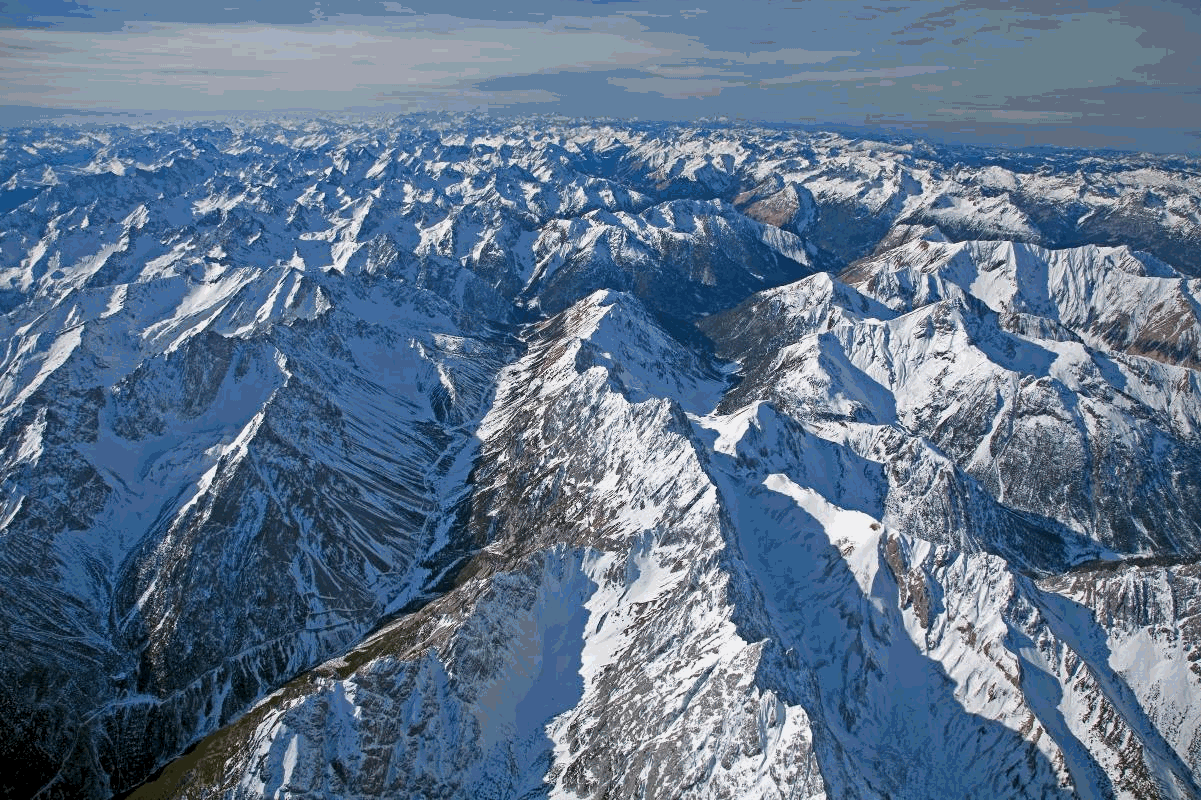 Blick Richtung Westen über dem Alpenhauptkamm. Wo waren die letzten Landmöglichhkeiten?
